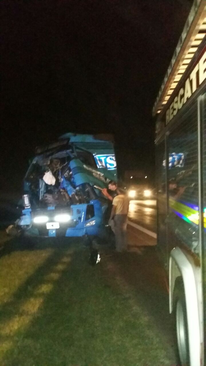 El chofer del Volvo sólo sufrió heridas leves y fue trasladado por el CEM, trabajo intensamente bomberos voluntarios, CEM, Cincovial, policía y Gendarmería.