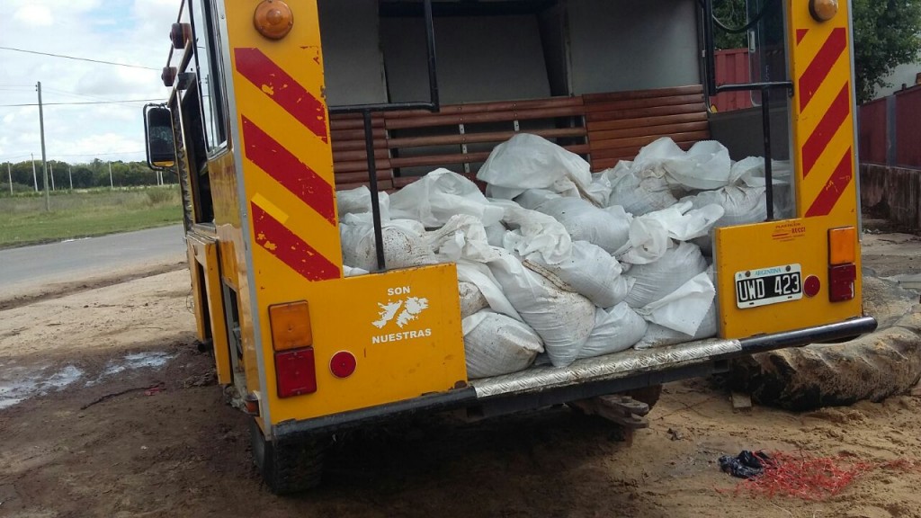 En las últimas horas integrantes del cuartel local entregaron bolsas de arena a vecinos que sufrieron el ingreso de las aguas en sus casas.