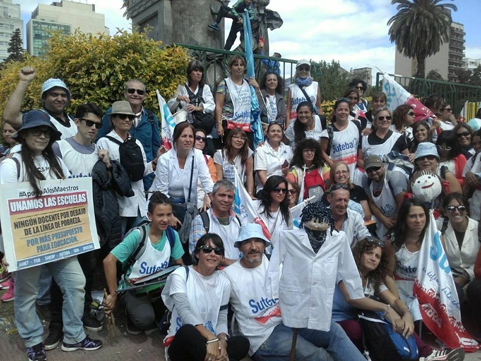Con una asistencia de más de 60 mil personas, la concentración docente realizada frente a la Gobernación de la provincia de Buenos Aires se convirtió en una Asamblea. Los docentes expresaron su voluntad de seguir con las medidas de fuerza en el marco de la unidad de los seis gremios docentes Suteba, Feb, Udocba, Uda, Sadop y Amet.