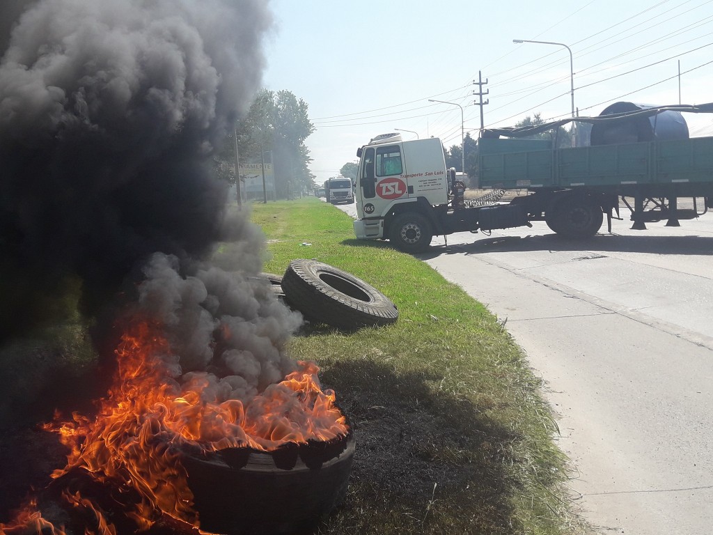 La protesta se inició en Savio y Bogado en la mañana del miércoles. Fleteros protestaban porque la Municipalidad de San Nicolás restringe el tránsito pesado en calles adyacentes a la la zona portuaria y fabril de Ramallo.