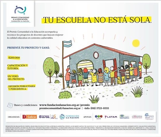 La convocatoria de postulación se encuentra abierta a partir del 20 de marzo hasta el 7 de julio de 2017. Entre las escuelas participantes se seleccionarán tres ganadoras que recibirán $200.000 para el fortalecimiento del proyecto. También se les brindará la realización de un video para cada una de las tres prácticas ganadoras, una capacitación docente y un acompañamiento de su proyecto, además de la difusión en medios publicitarios y periodísticos, (en especial a través de LA NACION).
