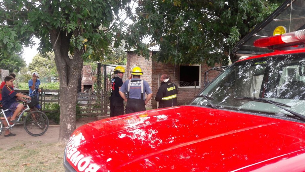 Este viernes una precaria vivienda de calle Keneddy al 410 de Villa Ramallo se incendió. Bomberos voluntarios actuó rápidamente en el lugar.