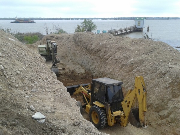 Para el tendido de la cañería se debió realizar un importante movimiento de suelo, la construcción y montaje de soportaría, preparación de los tramos de cañerías.