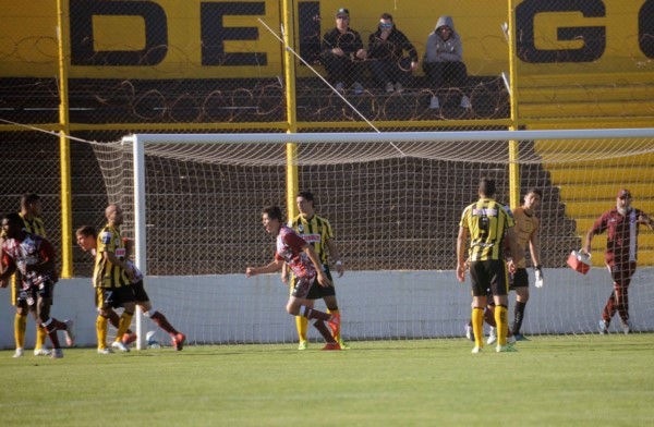 No aflojan los granates, este domingo golearon a Deportivo Madryn en su propia casa por 3 a 0 con goles de Caro, Nouet y Bonetto y mantienen chances de clasificar. El equipo de Héctor Storti supo disimular las ausencias (Ramírez, Freites, Capurro, Ponce) y logró un importante triunfo para mantener firme la ilusión. FOTO: Diario Jornada (Puerto Madryn).