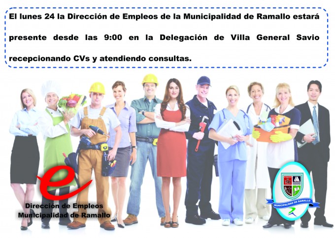 Representantes de la oficina de Empleo de la Municipalidad de Ramallo estarán este lunes en la localidad de Villa General Savio este lunes.