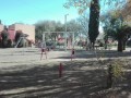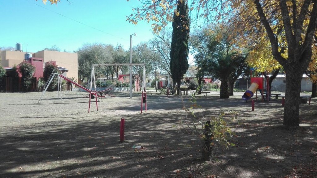 En la plaza se puede observar el pasto cortado al ras y los juegos en buen estado de uso.