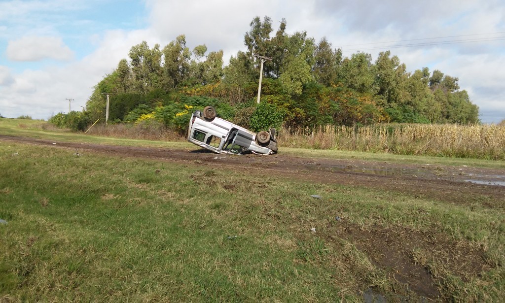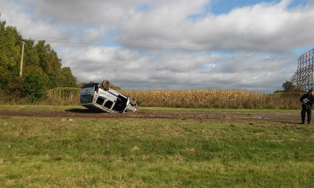 Un vehículo marca Citröen modelo Berlingo perdió el control y terminó volcando en el camino colector de la ruta nacional 9.