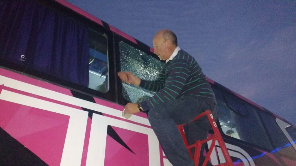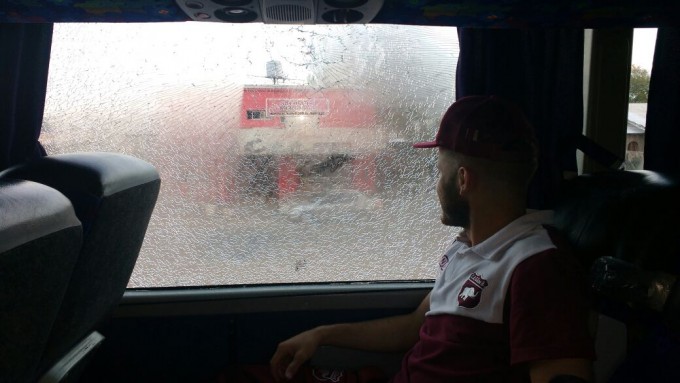 El preparador físico del plantel “Leo” Storti en diálogo con La Radio Ramallo señalaba: “El partido fue normal, con algunos cruces de palabras por todo lo que había pasado. Esas cosas suelen pasar en un partido final, nos saludamos con el árbitro, con los jugadores, hasta ahí todo normal. Cuando nos íbamos el “Colo” (Gómez) nos avisa que vamos a salir por otra puerta, porque en la puerta principal había algunos hinchas (Insólito). Salimos por una puerta lateral pero que daba muy cerca de la entrada principal, entonces quedamos a dos o tres metros de unos 30 o 40 hinchas que nos insultaban, la cosa no paso a mayores porque nosotros guardamos todo los más rápido que pudimos y nos subimos al micro sin responder a las agresiones. Pero cuando nos retirábamos nos apedrearon el micro y una ventanilla grande se astilló, por suerte no se rompió del todo y nadie salió lastimado, igualmente nos toco vivir otra situación lamentable”.