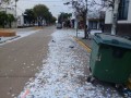 Un mar de papeles quedó esparcido sobre la Avenida San Martín de Villa Ramallo tras la partida de los egresados hacia la ciudad de Bariloche.