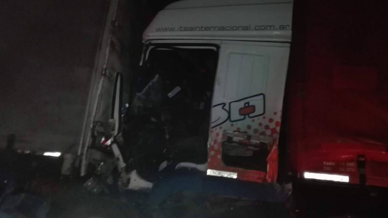 Este domingo pasadas las 21 horas un violento accidente se produjo en la ruta nacional 9 kilómetro 205, carril Buenos Aires- Rosario cuando un camión por circunstancias que se deberán establecer embistió a otro camión.