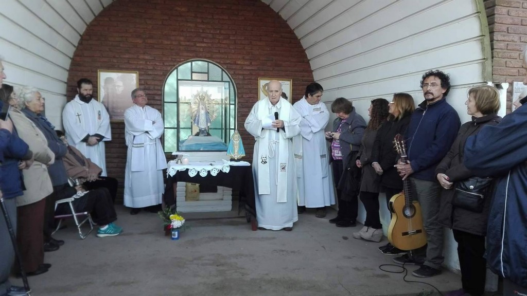 El Padre Aníbal Polacchi junto a un grupo de sacerdotes ofició misa y hubo momentos emotivos con palabras de vecinos para recordar al obispo.