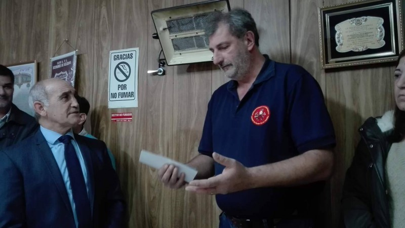 En la localidad entregó un subsidio de 40 mil pesos y felicitó al cuerpo de bomberos voluntarios por la labor que realizan día a día frente a cualquier emergencia.