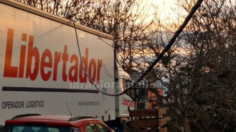 El hecho ocurrió en la intersección de calles Ginocchio y Belgrano cuando un camión de gran porte cortó el cableado eléctrico.