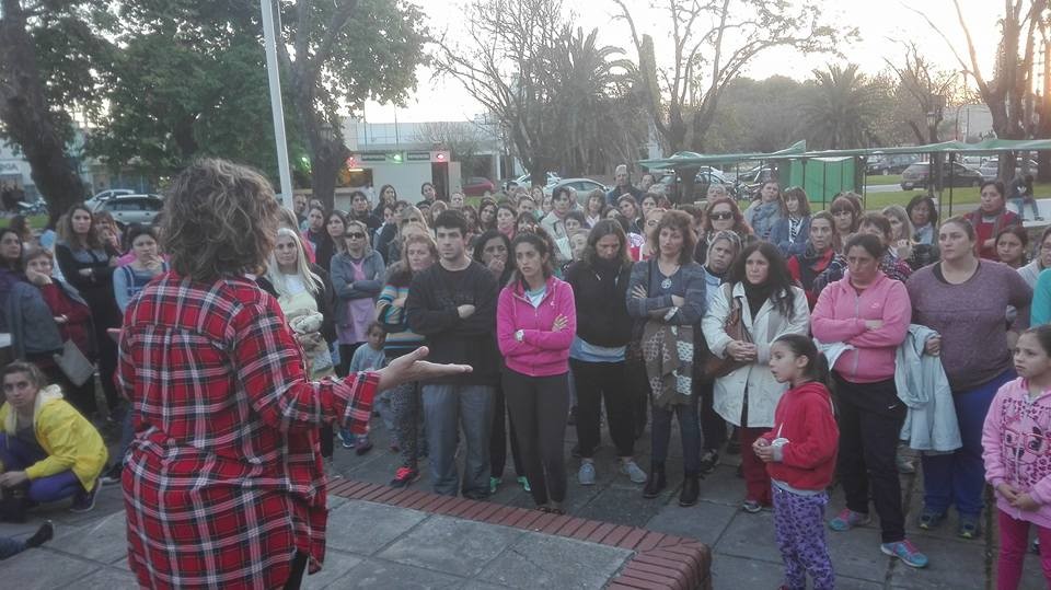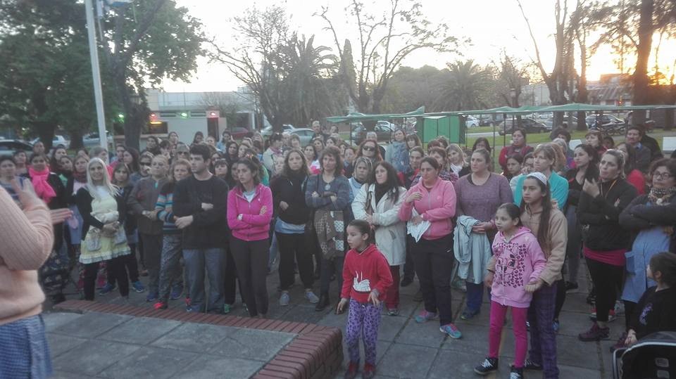 Docentes y vecinos reunidos en la plaza «José M. Bustos» de Ramallo brindaron su apoyo al profesor separado de su cargo por una denuncia en un establecimiento educativo.