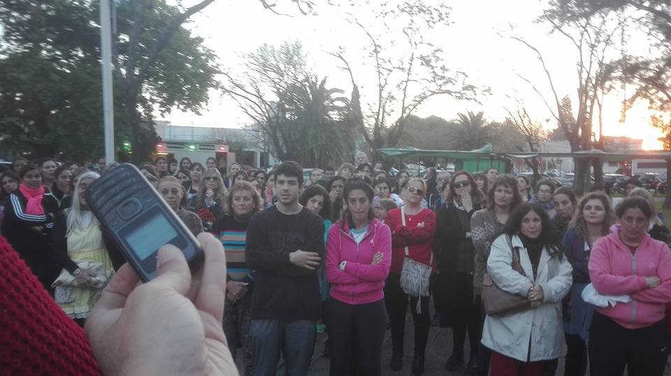 La movilización fue convocada a través de las redes para respaldar al docente cuestionado que hace dos meses fue separado de su cargo hasta tanto la investigación finalice. Además de este apoyo al profesor, aparecieron otros reclamos de los docentes.