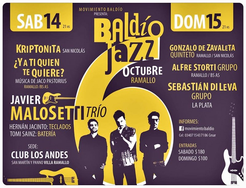Este sábado 14 y domingo 15 se realizará la sexta edición del festival "Baldio Jazz" en el Club Los Andes de Villa Ramallo.Contará con la presencia del bajista y compositor Javier Malosetti.