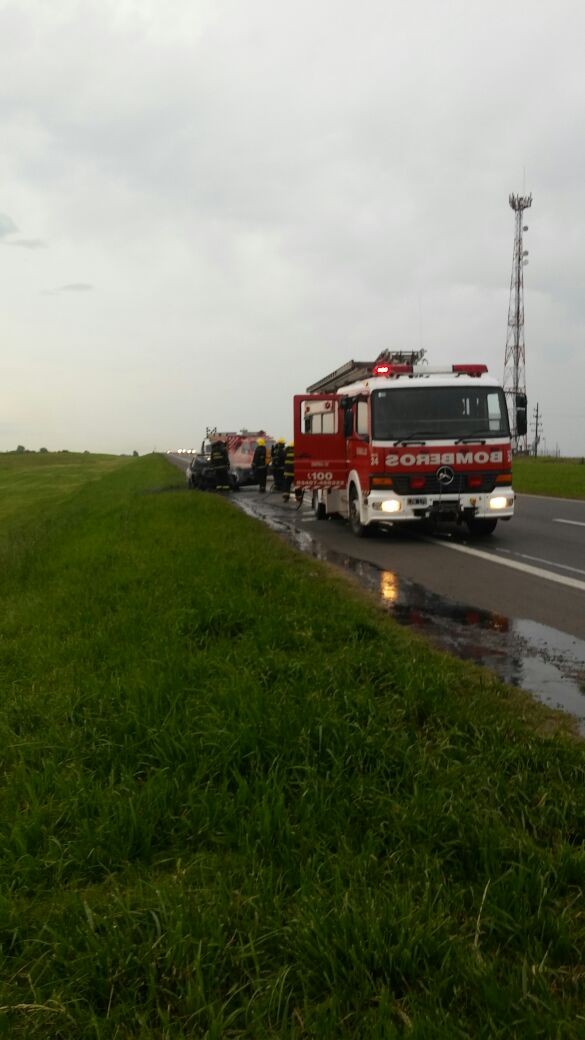 Por causas que se tratan de establecer un VW Passat envistió la parte trasera de un semirremolque Ford cargo, luego del impacto el VW se prende fuego y los transeúntes que circulaban por el lugar rescatan al chofer del auto con golpes y escoriaciones.