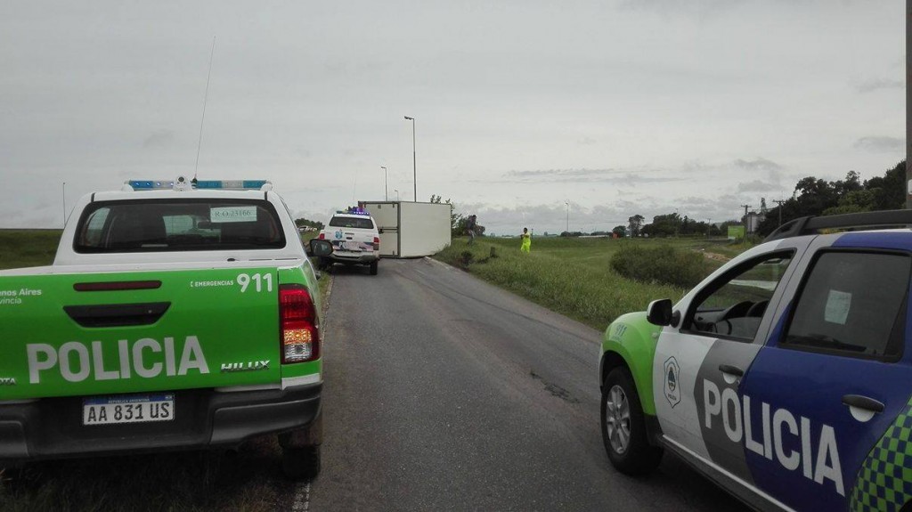 Bomberos voluntarios informó que "14:10 se recibe el llamado a la guardia informando del vuelco de un furgón con una persona atrapada en su interior en el acceso al puente de la ruta Provincial 51 desde autopista carril Rosario - Buenos Aires. Se desplazó al lugar 2 dotaciones de bomberos. En el lugar del siniestro se encontraba un furgón volcado sobre uno de sus laterales; se procedió a la inmovilización y el rescate del chofer una vez descendido a través de cuerdas se le entrego al personal de Unidad Sanitaria para su traslado".