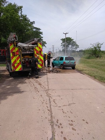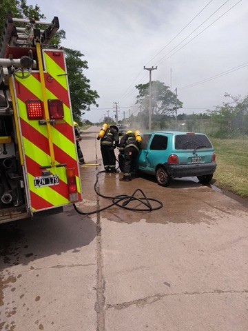 Este viernes alrededor de las 12.50 horas bomberos voluntarios recibió el llamado informando el incendio de un automóvil Renault Twingo en camino al cementerio frente a la quinta de Barberis.