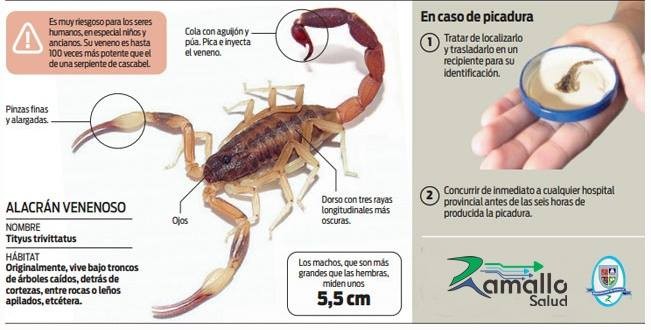 En el segundo caso se trata de una joven de 17 años años que también fue asistida y llegó con el alacrán al centro de salud municipal para su estudio.