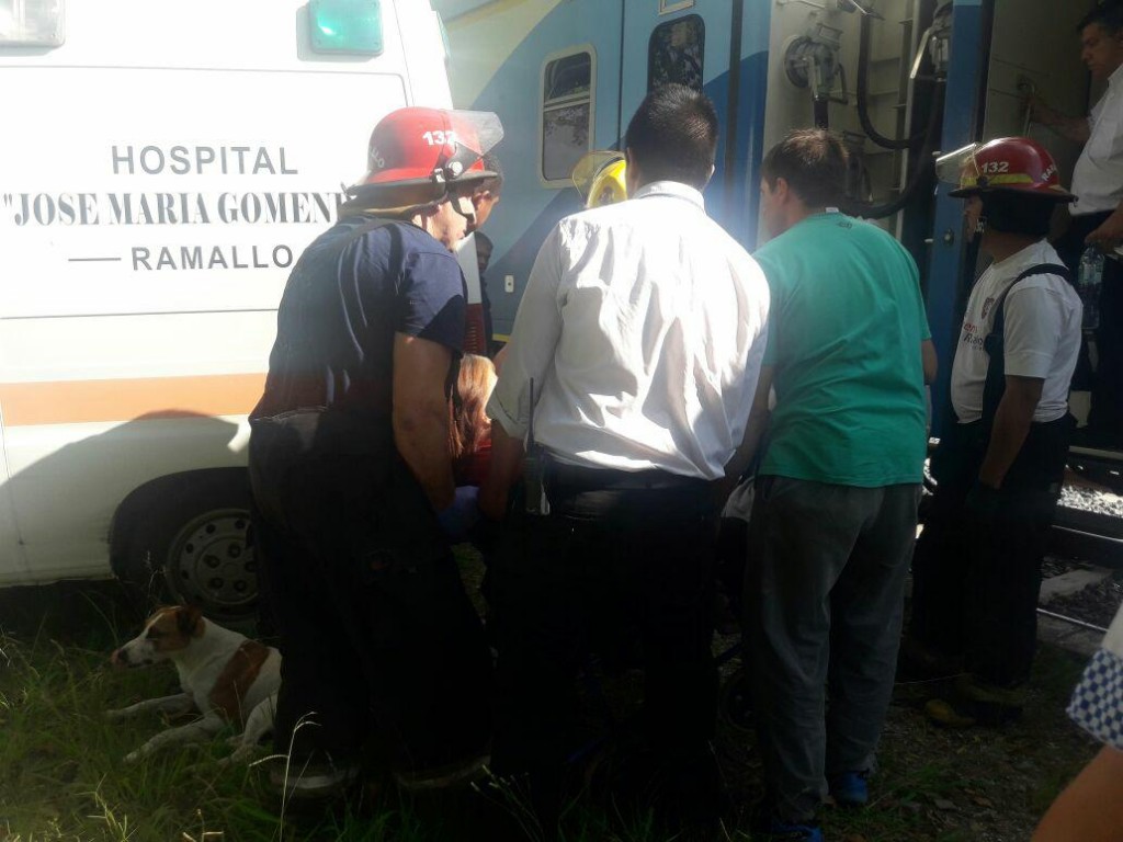 Una vez rescatada usando silla de ruedas y rampas del mismo tren fue trasladada por personal de la Unidad Sanitaria de Villa Ramallo.