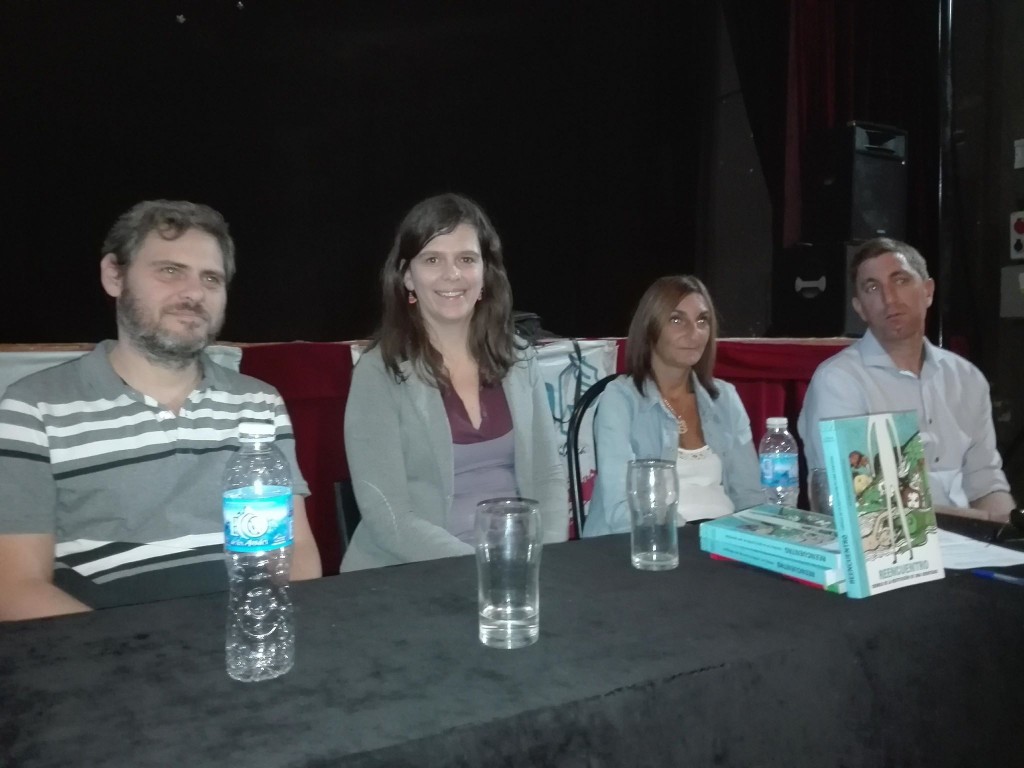 Invitados por Suteba Ramallo este lunes Auditorio Libertador de Villa Ramallo se realizó la presentación del libro "Reencuentro - Crónicas de la restitución de una identidad", de Alfredo Hoffman, que narra el proceso de restitución de la identidad de Sabrina Gullino Valenzuela Negro. De la rueda de prensa participaron Soledad Guidi y Federico Aranguren de Suteba junto al escritor y Sabrina. Luego estuvieron visitando escuelas del distrito. El autor del libro, el periodista, Alfredo Hoffman, vive en Paraná y se dedicó a realizar una minuciosa investigación que está plasmada en la publicación.