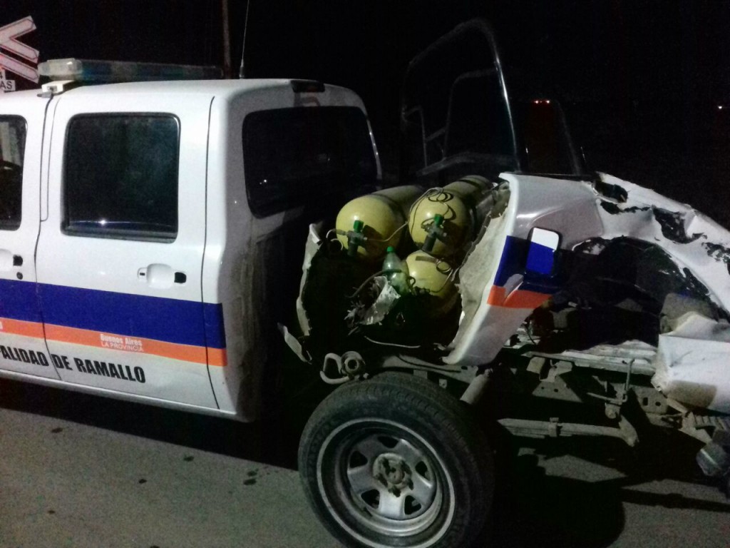 Por causas que se tratan de establecer, el único patrullero policial que tiene la localidad fue embestido por una máquina de tren carguero.