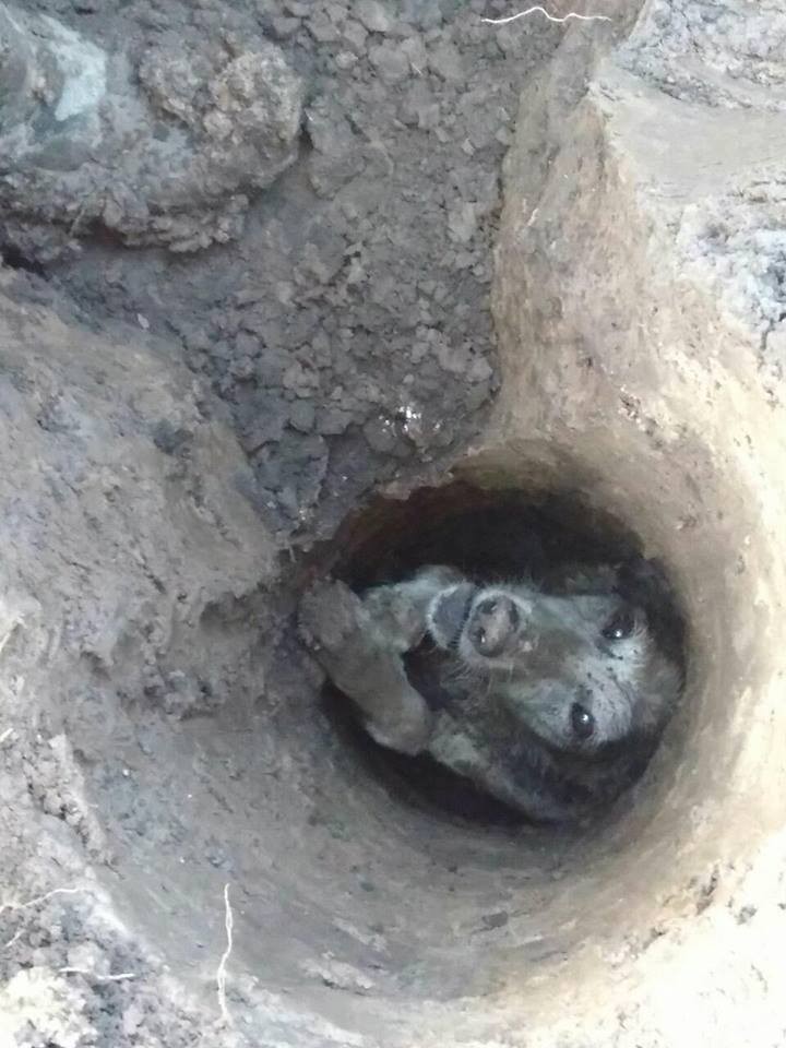 7:30 bomberos es alertado que un can se encontraba caído dentro de un pozo de aproximadamente un metro y medio de profundidad en calle Gomendio 263 Ramallo. Hasta el lugar se dirigió una dotación y trabajaron intensamente con un pala de punta. Luego con una maquina retro excavadora de la Municipalidad hicieron un pozo paralelo y se logro rescatar al perro sano y salvo.