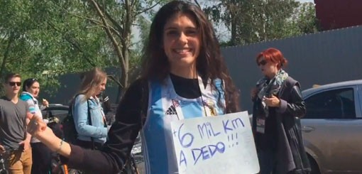 Agustina Murua se fue a dedo desde Dinamarca hasta Moscú para acompañar a la selección Argentina. La joven nicoleña salió desde Buenos Aires en avión hasta Copenhague y desde Moscú dialogó con la Radio Ramallo.