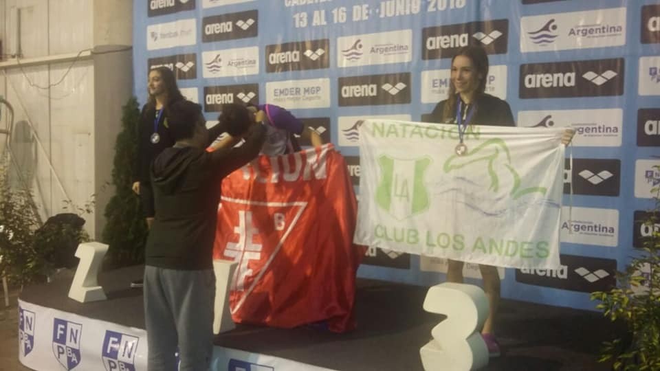 La nadadora del club Los Andes Catalina Oviedo, acompañada por su entrenador Mario del Arco, se encuentra en la ciudad de Mar del Plata participando del torneo Nacional de Natación para las categorías cadetes 1 y 2. Catalina, categoría cadete 1, obtuvo el primer puesto y se consagró campeona Nacional en 200 mts combinado y en 200 mts mariposa. Además accedió al podio en el tercer lugar en 200 mts pecho y en 100 mts pecho. Felicitaciones!!!!!