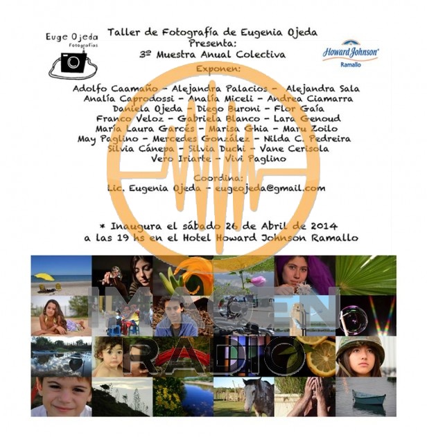 El sábado 26 de Abril en el Hotel Howard Johnson Ramallo se realizará la 3º Muestra Anual Colectiva del Taller de Fotografía realizada por Eugenia Ojeda.