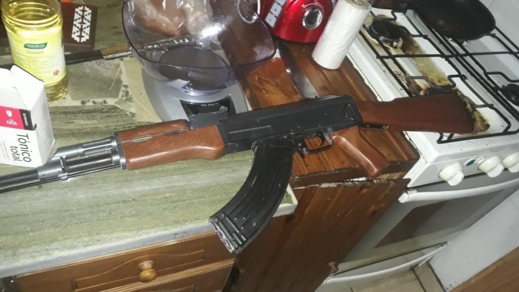 En el allanamiento se incautaron boinas, cuchillos, estribos, balanza comercial, dinero efectivo (aproximadamente $74.000), 2 kg. de Marihuana, 130 grs. Cocaína, armas de fuego (revolver calibre 38, pistola calibre 22 y 1 réplica de ametralladora AK 47) , municiones, 2 handies, cuchillería, balanza de precisión, 3 televisores led, multiprocesadora, bolsas de nylon (para corte y posterior envoltorio).