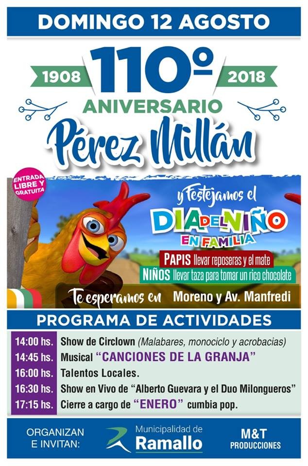 Este domingo con múltiples espectáculos se celebrará un nuevo aniversario de la localidad de Pérez Millán.