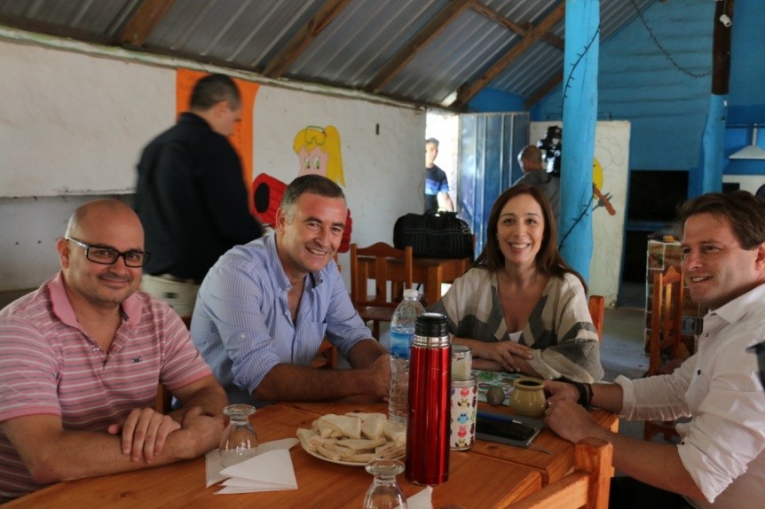 “Estoy muy contenta de estar en Pérez Milán estuve en la tornería de Manuel Castro con Estela su mujer conociendo el trabajo que hacen y la verdad que me voy contenta porque me contaban de la recuperación del trabajo a través de la cosecha ha dado más trabajo a la tornería, el frigorífico Arre Beef que está creciendo y que está teniendo un acuerdo con China y Japón. Hoy por la mañana veíamos los resultados en la ruta 5 del G20 y fueron las gestiones que realizó el presidente en el foro con otros presidentes. Hoy el frigorífico le vende a China entonces la gente tiene más trabajo. El frigorífico también le vende a Japón o como hicimos esta mañana en donde una empresa China va a hacer la ruta 5 bueno todo eso es bien concreto y el resultado del trabajo que viene haciendo el presidente para que la Argentina vuelva al mundo” comenzó diciendo Vidal.