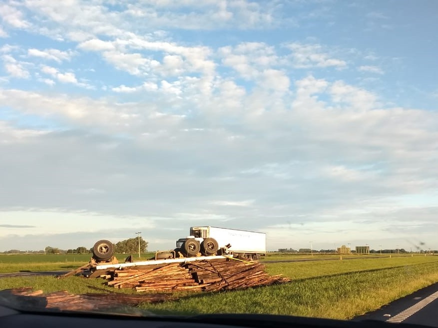 Este martes se produjo el vuelco de un acoplado de un camión que transitaba por el carril Buenos Aires- Rosario de la ruta 9.