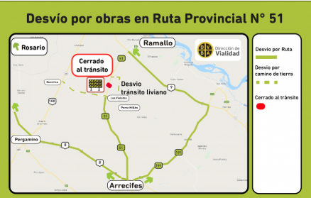 La Dirección de Vialidad de la Provincia de Buenos Aires, dependiente del Ministerio de Infraestructura y Servicios Públicos, comunica el corte total de la Ruta 51, en inmediaciones del Acceso a La Violeta. Este se producirá por 45 día desde el lunes 21 a las 8 hs hasta el jueves 7 de marzo a las 20 hs a la altura del Puente sobre las vías del ferrocarril Belgrano