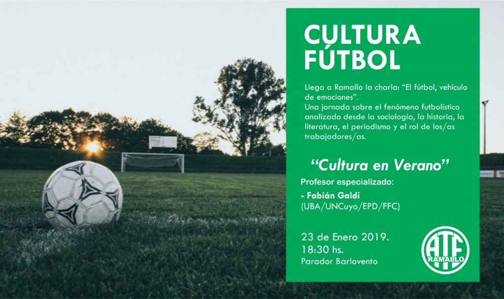 Galdi expresó “Tal es la premisa del curso "El fútbol, vehículo de emociones", que tendré la posibilidad de desarrollar el próximo 23 de enero en Ramallo (Provincia de Buenos Aires), gracias a la invitación de ATE. La jornada se enmarca dentro del contexto de las actividades culturales previstas para los trabajadores y las trabajadoras bajo el ciclo "Cultura en Verano". En esta charla analizaremos el fenómeno futbolístico a través de una mirada múltiple y que combine elementos de la historia, la sociología, la pedagogía, la psicología y el arte además de lo específicamente deportivo. Nos enfocaremos en el hecho sociocultural relevante y utilizaremos datos, información y estadística como método de acercamiento. La pelota siempre asociada al contexto, en síntesis”.