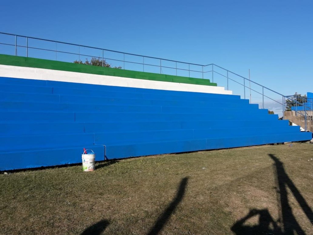 Además empleados municipales realizan el pintado y lavado de tribunas, postes y vestuarios.