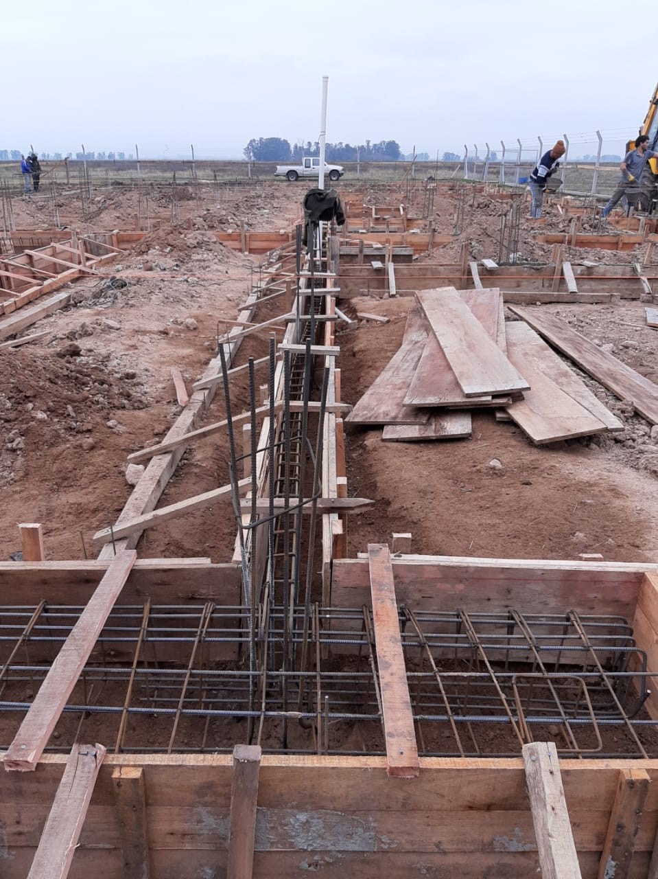 Además se procedió al armado de pilotines de fundación y llenado de los mismos con hormigón y se realizó el encofrado de las vigas de fundación y se hormigonó la primera parte.