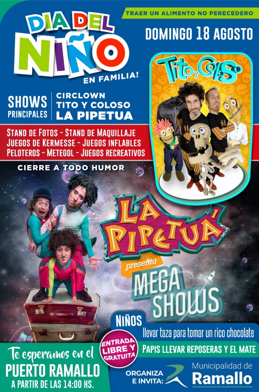 La Municipalidad de Ramallo te invita a festejar el “Día del Niño” el próximo domingo 18 de agosto a partir de las 14:00 hs en el Puerto de Ramallo.