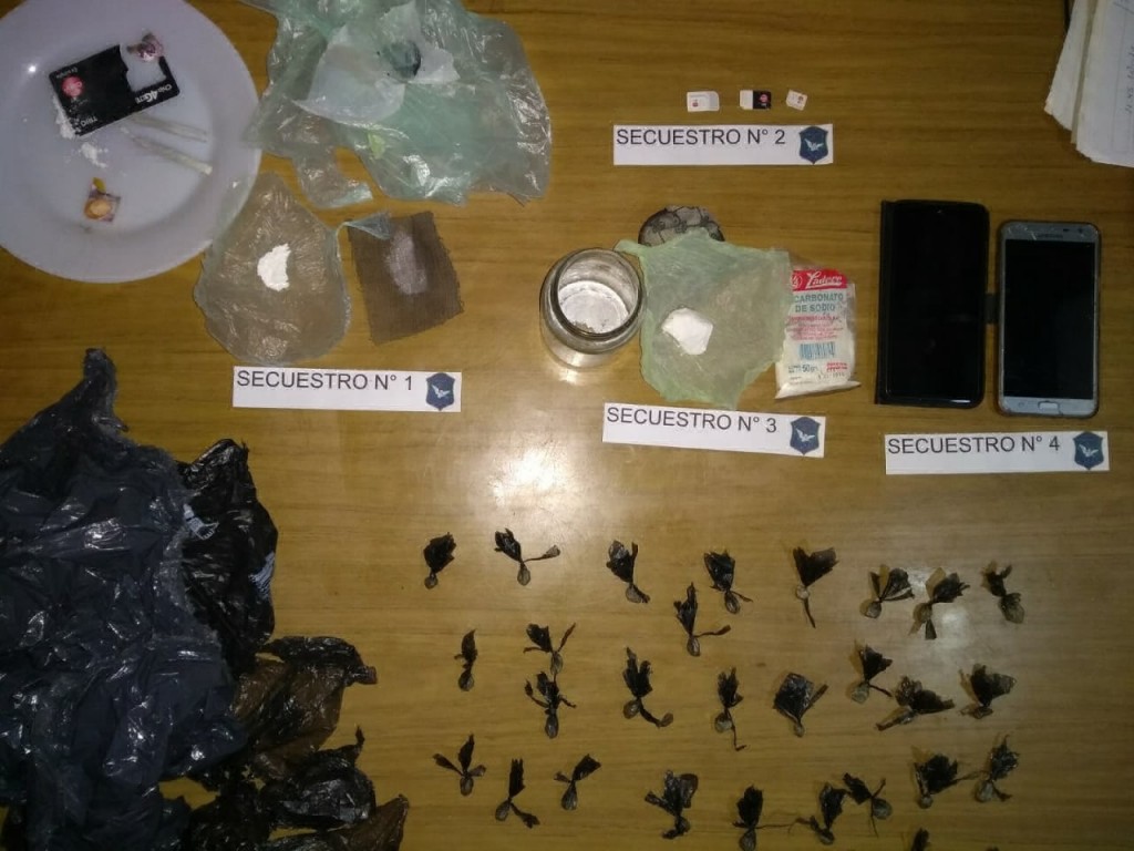 En el procediendo se secuestra cocaína y marihuana fraccionada para su venta, recortes de elementos de estiramiento, telefonía celular, procediendo a la aprehensión de dos masculinos mayores que fueron trasladados a sede policial a la espera de ser indagados.
