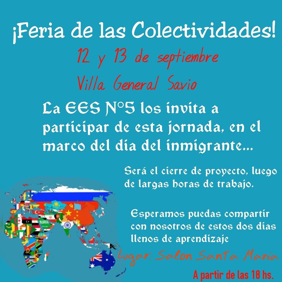 Este jueves se realizará en la localidad de Villa General Savio una nueva edición de la Feria de las Colectividades.