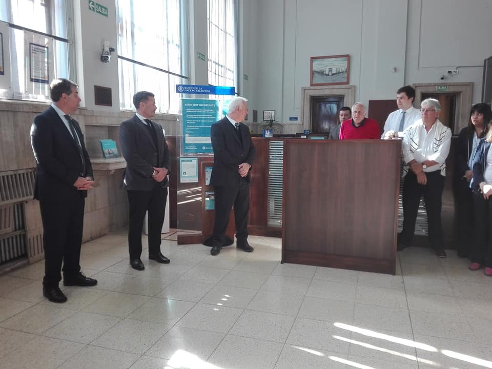Raúl Rodríguez, gerente de la regional Pergamino del Banco Nación expresó palabras muy sentidas recordando a los dos funcionarios y pidió un minuto de silencio. Luego se descubrió una placa.