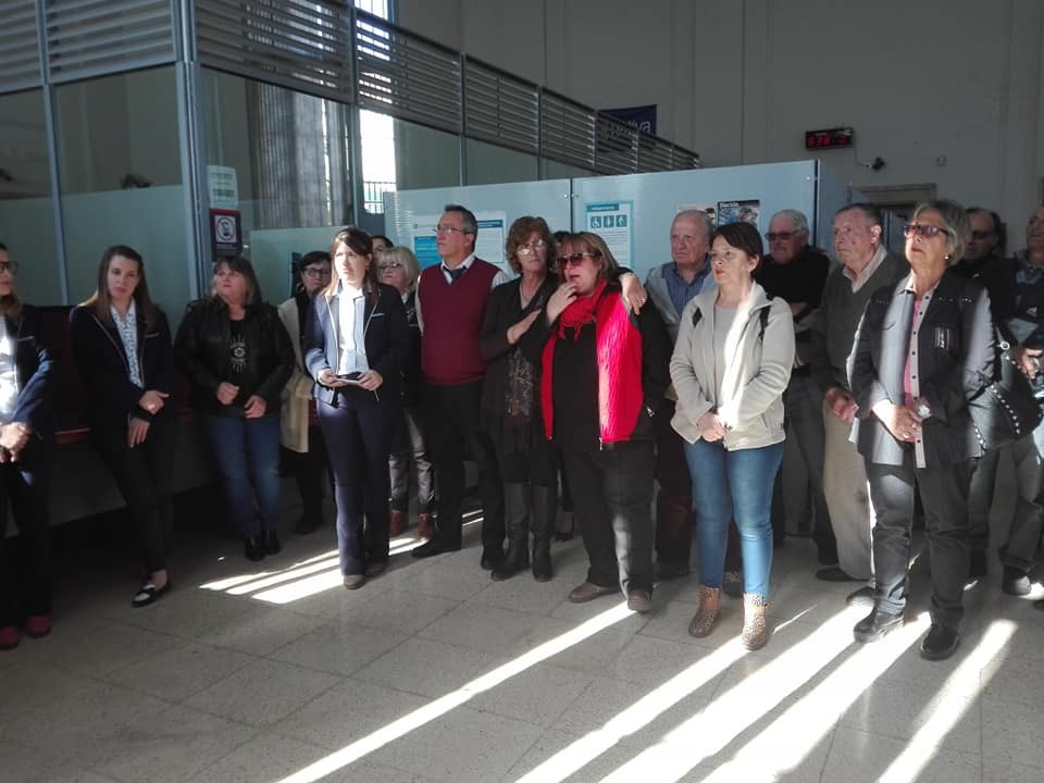 Este martes se realizó el acto conmemorativo recordando a los funcionarios Carlos Cháves y Carlos Santillán ambos fusilados en la Masacre del banco hace 20 años atrás. La ceremonia fue breve, cargada de silencios emotivos que marcaron la jornada reflexiva y de memoria entre los que participaron en el hall del Banco Nación.