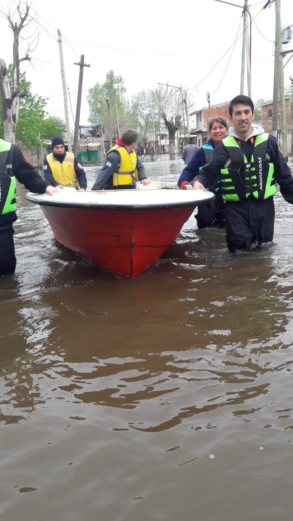 "Queremos compartir con ustedes la experiencia vivida hoy en el partido de la Matanza ... Ayudamos a evacuar a la gente inundada.... La mayoría eran niños , dos adultos y un anciano.La felicidad que tenemos mis compañeros y yo no se puede describir .Está mañana partimos a las 04.15 hs en el móvil 25 con una dotación de 4 bomberos, Armoa Facundo, Benitez Ricardo, Acosta Gerardo y yo (Verónica)"