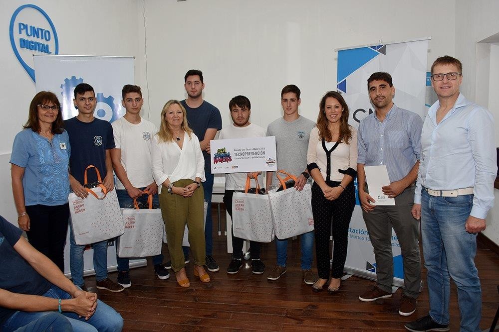 Hoy se realizó el acto de premiación a los ganadores del concurso Gen Técnico Makers en el Club de Emprendedores. El 1° premio lo obtuvo el equipo TECNOPREVENCIÓN de la Escuela Téc. N° 1 de Ramallo, a través de la votación en la fanpage Gente del Acero, juntando 1089 votos. Esto les permitió ganar materiales y equipamiento para su escuela por un valor de $60.000.