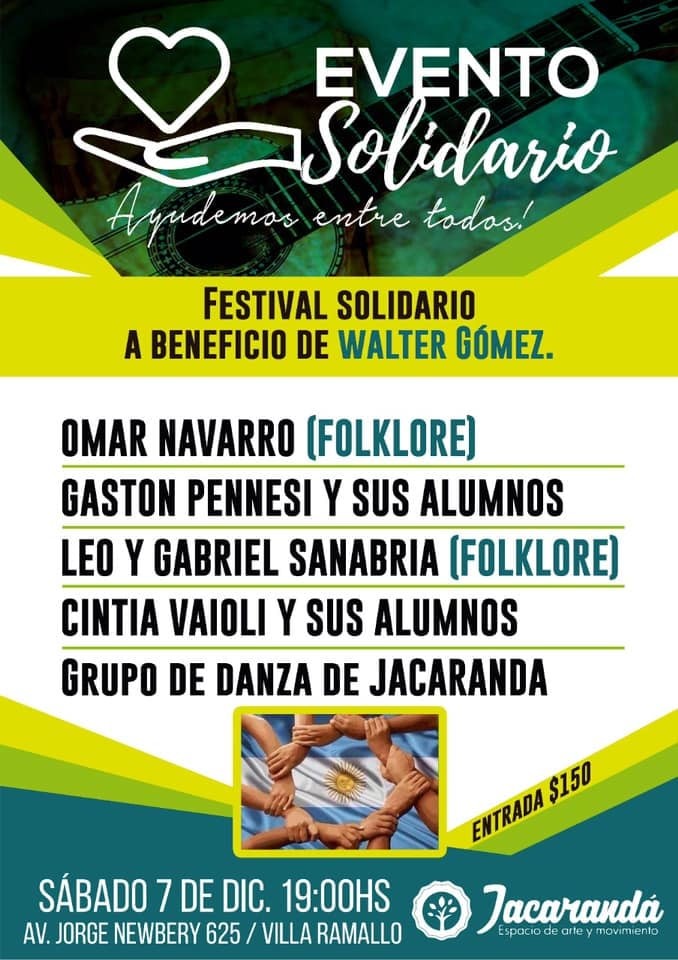 Este sábado se realizará un festival solidario a beneficio de Walter Gómez quien enfrenta un virus intrahospitalario, tras sufrir un ACV y necesita comprar una medicación que tienen un costo de 400 mil pesos informaron este jueves a la Radio Ramallo familiares y amigos.