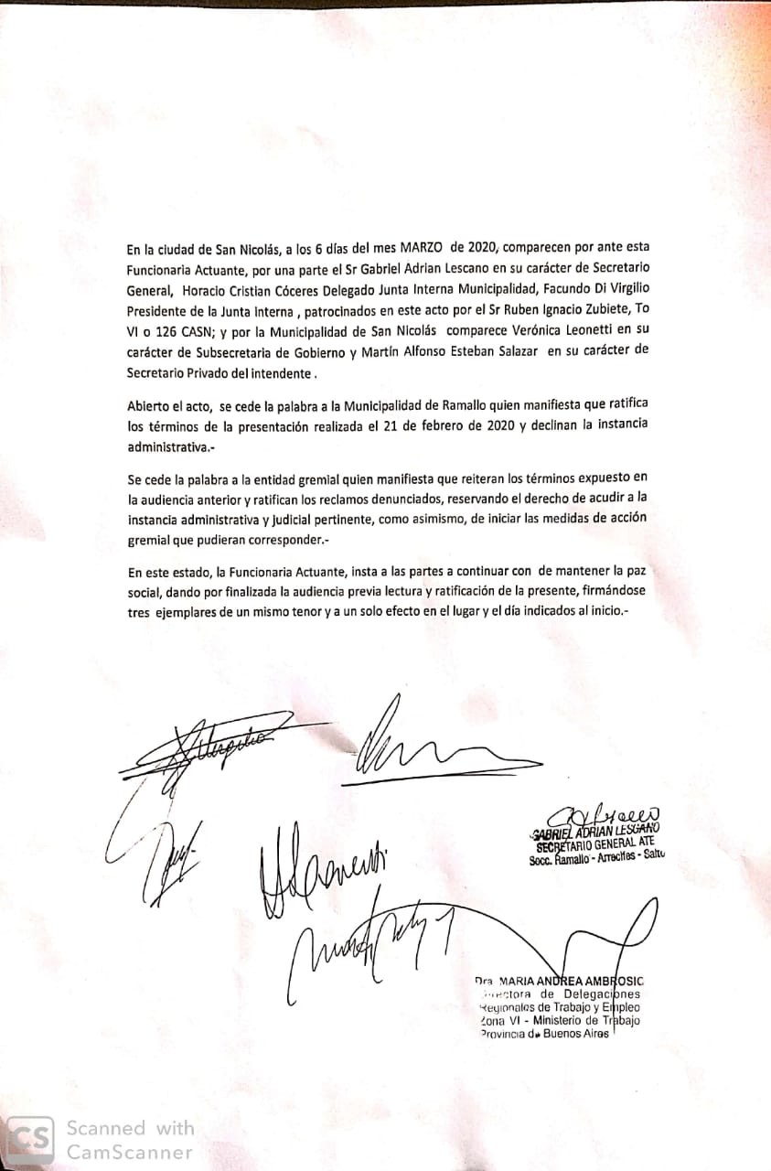 Este viernes 6 de marzo convocados por las autoridades de la delegación San Nicolás del Ministerio de Trabajo; ATE seccional Ramallo, Arrecifes y Salto estuvo presente reiterando el pedido de reincorporación de los 40 trabajadores despedidos por la Municipalidad de Ramallo.