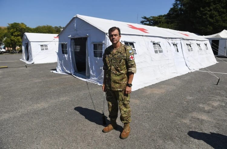 --En el año 2018 me convocaron para que tomara contacto con este hospital militar reubicable. Pensábamos en la utilización de un terremoto o una contingencia de inundación para utilizar en un punto estratégico del país. Estuve con “Wado” De Pedro (Ministro del Interior), con Agustín Rossi (Ministro de Defensa), obviamente que con todas las autoridades militares, estamos bajo las ordenes de ellos. En este comité de crisis estamos todos juntos. Creo que en la Argentina estamos encarando las cosas bien. La primera vez que sacamos el hospital militar tardamos doce días y ahora tardamos once horas y dejamos todo armado. Está instalado en Campo de Mayo. En los últimos días vinieron canales israelíes, españoles, italianos desde diferentes lugares. Este hospital militar reubicable es una gota de agua en el océano, no va a servir si la gente no toma conciencia que tiene que quedarse en su casa. La gente tiene que quedarse en su domicilio. Probablemente estos catorce días se prolonguen, para que no se colapse el sistema de salud. Este hospital militar reubicable tiene una gran morgue y pensamos tener una gran cantidad de víctimas, nadie me lo pregunto, les estoy dando la primicia, es escalofriante pero es así. Estamos viendo cómo hacer el manejo de cadáveres. Esto depende de la gente.