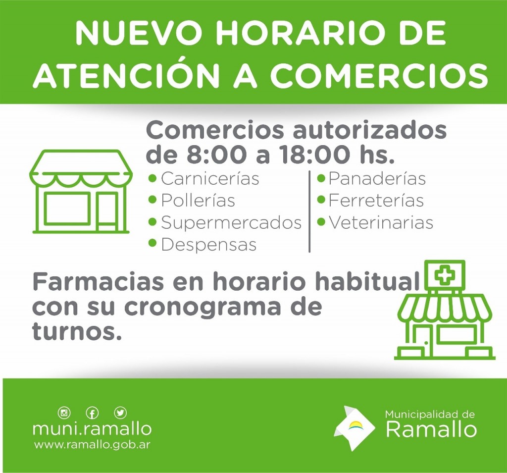 La Municipalidad de Ramallo, estará notificando hoy a los comercios que deberán implementar un horario de atención al público de 8.00 a 18.00.